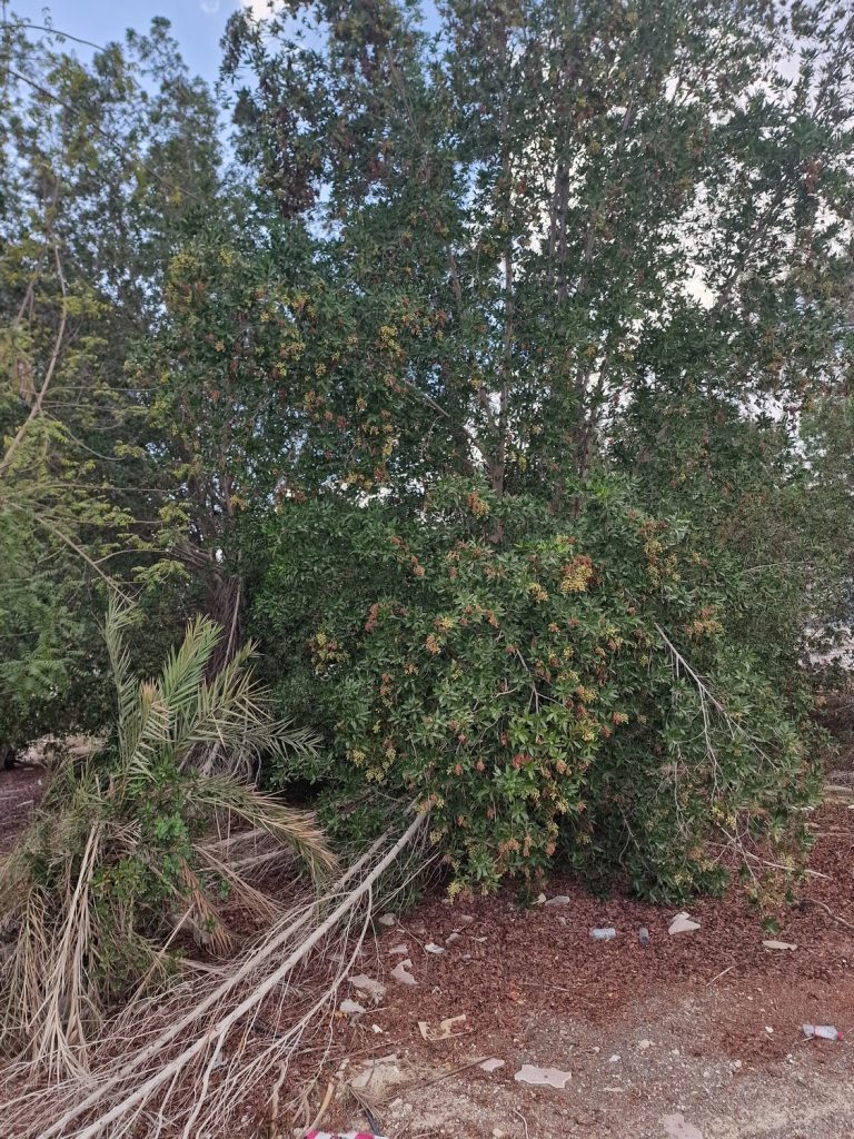 A few of the usual suspects seemed to be missing, notably Neltuma (Prosopis) juliflora, mesquite, and Salvadoria persica (toothbrush tree). Also absent were Prosopis cineraria (ghaf) and Vachellia (acacia). There seemed little by way of native regeneration taking place, something I’ve observed on other sites.