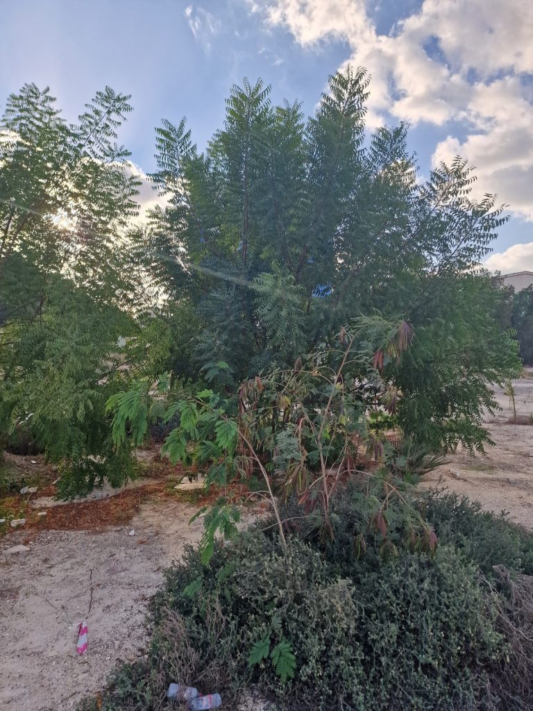I can’t find any information about the site, it is gated, with roads, paths and benches laid out, that look like they have been there for years, but not maintained. There are some occupied flats in one area and other buildings, including a mosque, but the central part remains open and undeveloped. Presumably, it’s a project that was not completed. What caught my interest was the species of trees which are spontaneously emerging on some parts of the site. This is not obvious until you enter on foot, as you can see from the pic above. Even then, many people might not notice what’s going on.