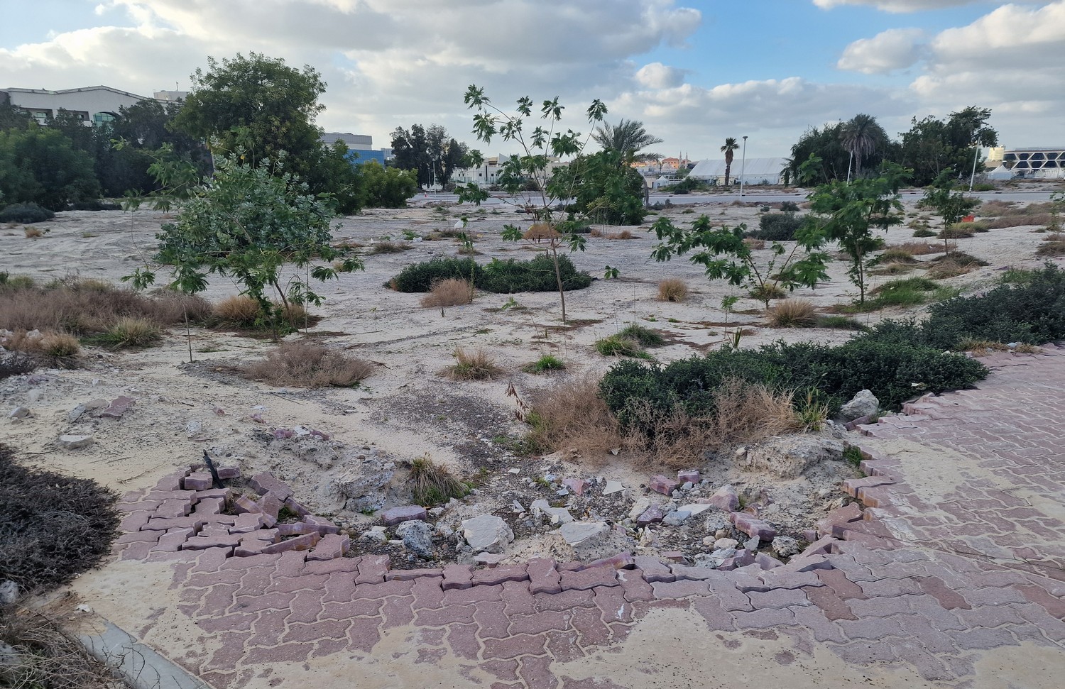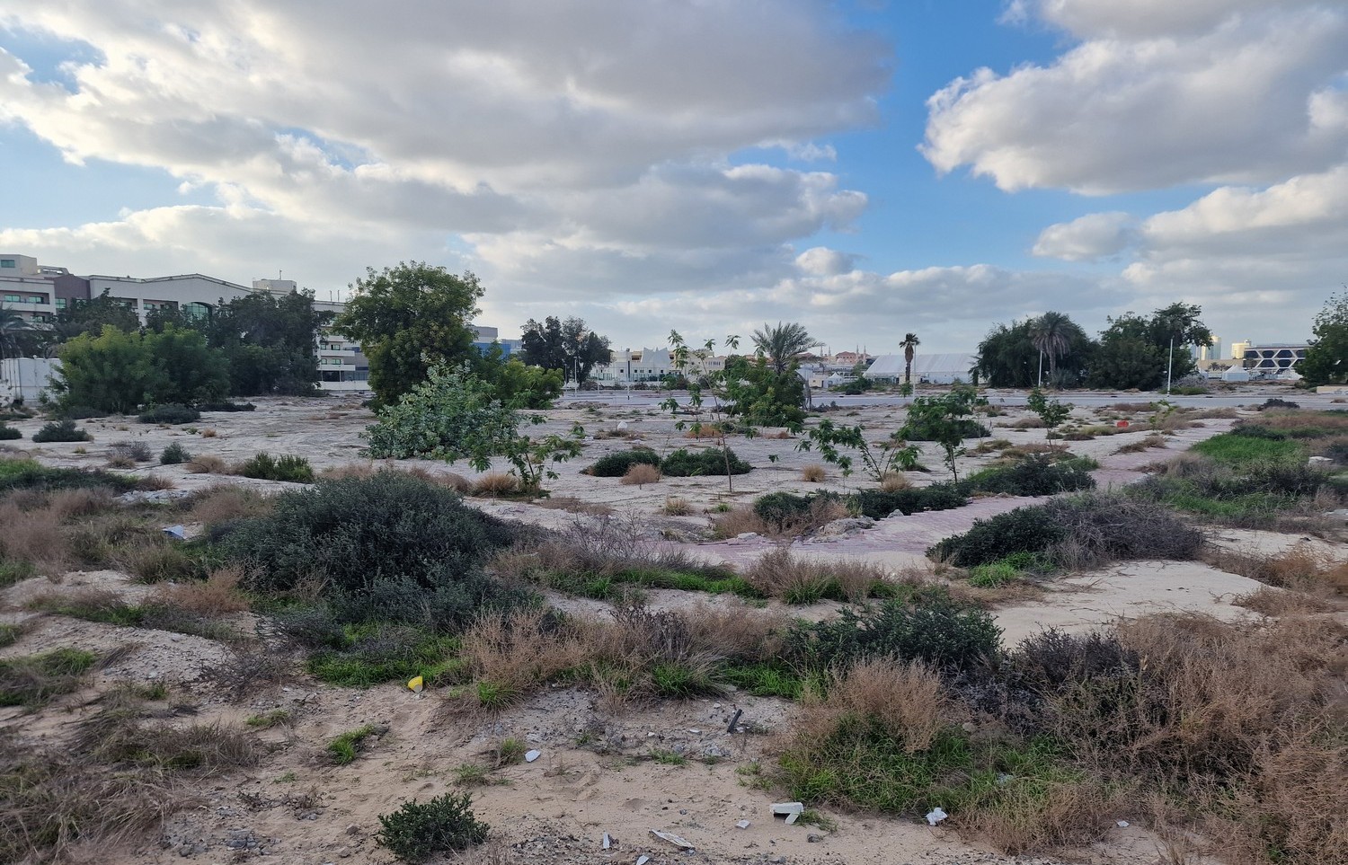 On my recent visit to Dubai, I found another Brownfield site (abandoned development might be more accurate) where some interesting natural regeneration is occurring. Like most such places, it is presumably awaiting redevelopment. This particular area is located in Bur Dubai, next to Creek Park. If you’ve read any of my older posts, you will know I make a study of such places, for they are great indicators of emergent hybrid ecosystems, which are the world’s future resilience. I’ll put links to some other articles at the end of this one.